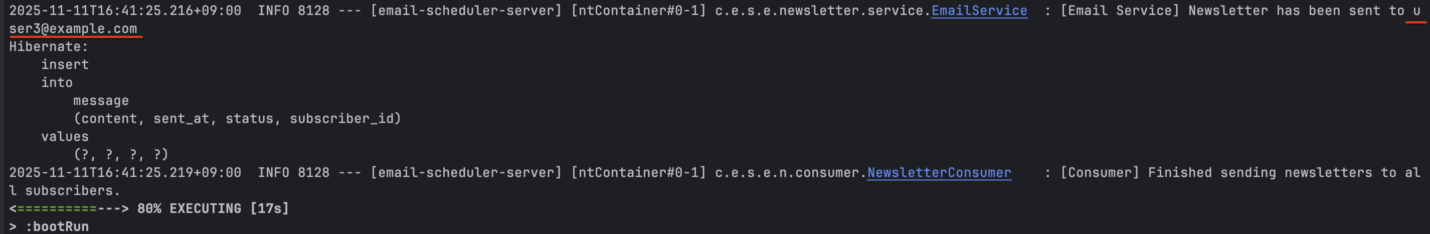 log.info("[Consumer] Finished sending newsletters to all subscribers.");