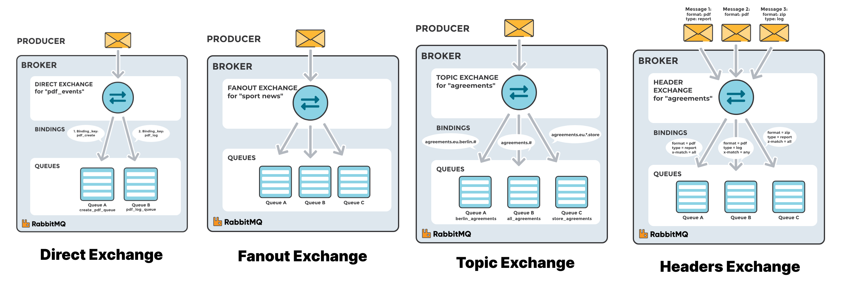- RabbitMQ Exchanges, routing keys and bindings