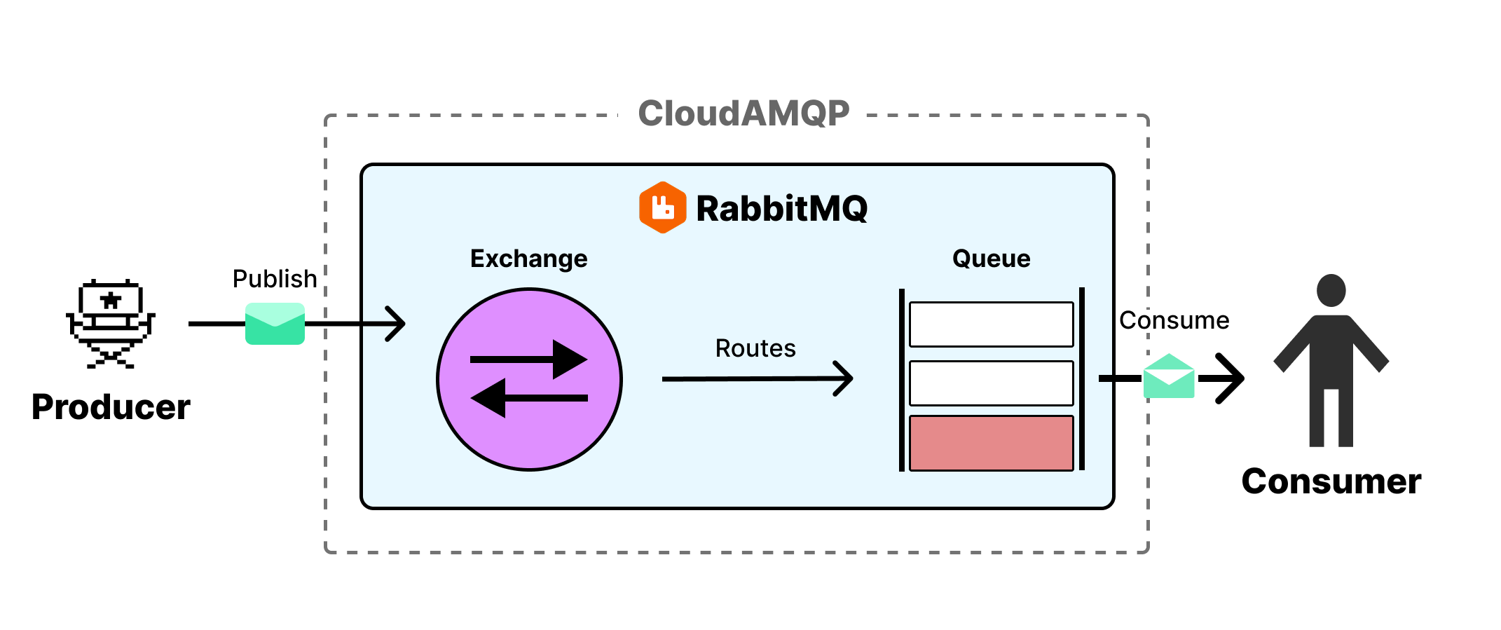 - Producer로부터 메시지를 받아 적절한 Queue로 라우팅하는 핵심 중개자이다.